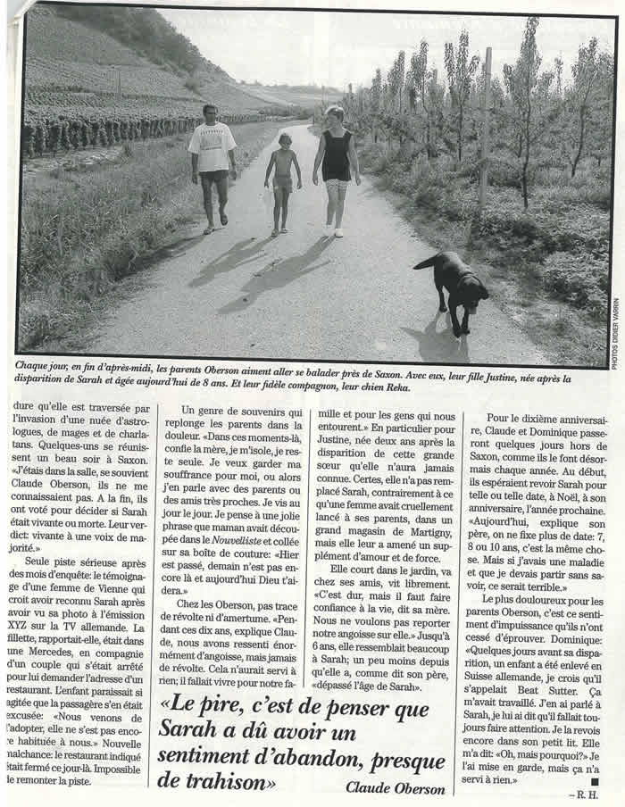 (L’Illustré, 16.08.1995, pp.10-13, Robert Habel) - Sarah Oberson : piste négligée ?