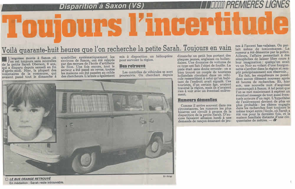 (La Suisse, 24.12.1985, 358, p.20, ATS/FM) - Mais où est donc Sarah ?